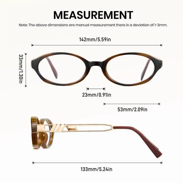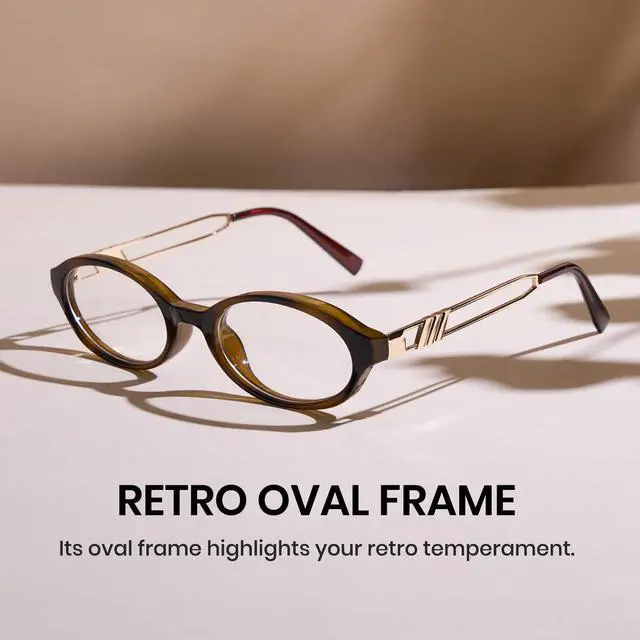 • Stylish Oval FrameThe modern oval frame design adds a fashionable touch, flattering various face shapes and enhancing your everyday look
