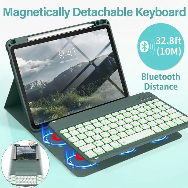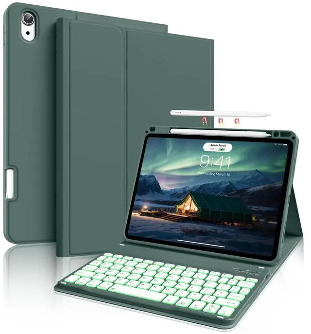 Model Number: A2316/A2324/A2325/A2072. NOT compatible with any other iPad models. Please check the back bottom of your iPad to find the model number before placing order ^^ 7-color Backlight KeyboardThis iPad air 7th/6th/5th/4th Generation keyboard case has 3 levels of 7 colors backlighting, adjustable different brightness levels and preferred backlighting color, the light can enhance the visibility of the keys in low-light environments, provide users with beautiful visual enjoyment, and allow users to type on the keyboard more easily ^^ Support Charging Pencil HolderThe iPad air 11 inch/ 10.9 -inch keyboard case has a built-in pencil holder, which means you can take your Pencil with you at all times and never have to worry about finding it again. It can be charged directly, so if you put your second-generation Pencil or the new Pencil-Pro on your keyboard, you can charge it right away without removing the keyboard case.