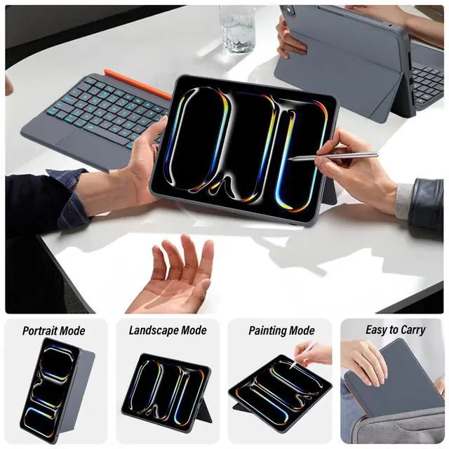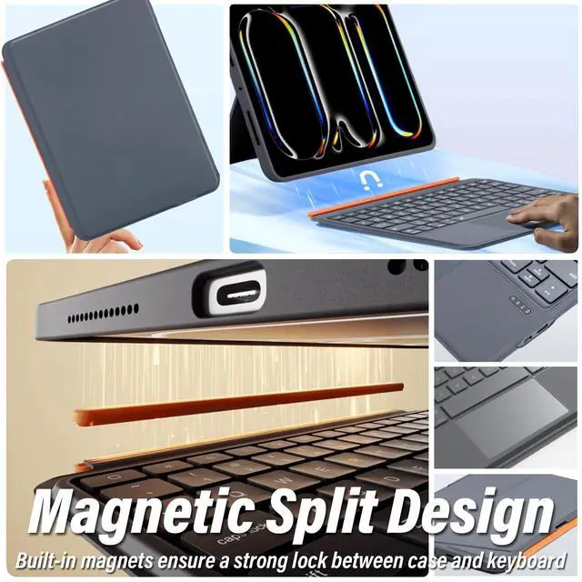 Magnetic Split DesignSupport 4 Stand Positions, multi-angle, multiple options. Landscape and floating mode support office and web browsing, portrait mode,including a flexible kickstand that provides multiple tilt angles to perfectly align with your tasks. Whether you're working, watching movies, or browsing the web, you can find the ideal viewing angle.