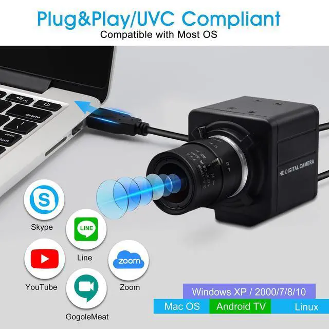 USB 2.0: IEights 4K usb zoom camera is play&paly, support UVC complian, work efficiently. Automatic light correction and fixed focus 4K varifocal lens computer camera: With automatic light correction and HDR technology, computer camera adjusts the color and brightness automatically according to the surrounding light, working with the high grade glass lens combined with fixed focus technology ensures the accurate capture of sharp and clear picture.