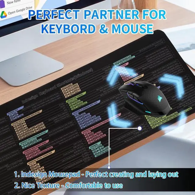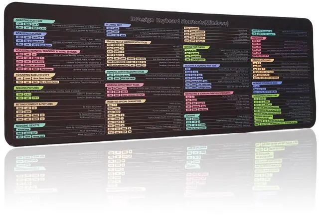 InDesign ShortcutsThe Large mouse pad with professional desktop InDesign shortcuts,specifically designed for improve work efficiency, making it easy for you use InDesign.
