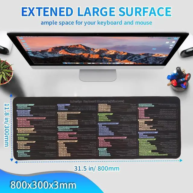 InDesign Mousepad, InDesign Keyboard Shortcuts for Windows,Large Size, Waterproof, Anti Slip Keyboard Pad,Keyboard Tips, Gifts for Beginner with Creating and Designing Desk Mat