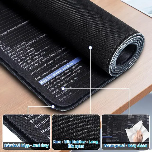 HD PrintingThe extra large keyboard shortcut mousepad adopts high-tech printing process to ensure that the pattern of the mouse pad is clear and the color is bright. Ensuring users have quick and easy access to frequently used commands and functions. This is a great office accessories.