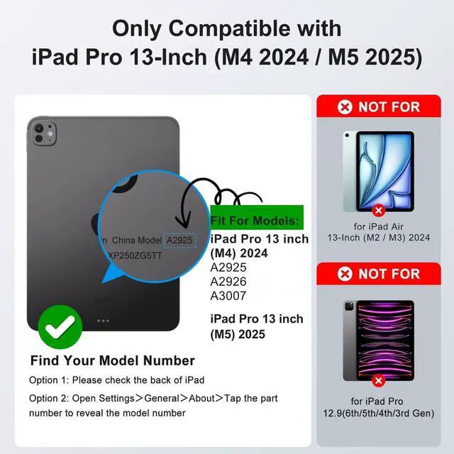 ^^ Compatibility: This premium slim keyboard case is ONLY compatible with iPad Pro 13-inch M4 2024 (A2925, A2926, A3007) / M5 2025.