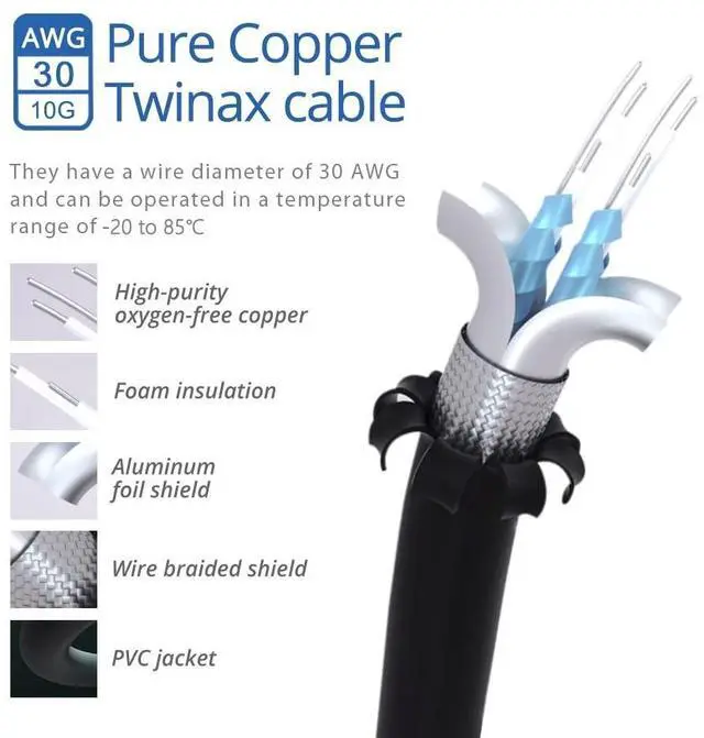 SFP+ 10GBASE-CU Twinax Direct Attach Cable is designed to connect SFP+ enabled networking devices. This 10Gb Ethernet (GbE) SFP+ Twinax Direct Attach Cable is ideal for point-to-point in rack or between racks networking connection. It is hot-swappable with fiber optic modules and supports up to 10Gb/s high speed data rate.