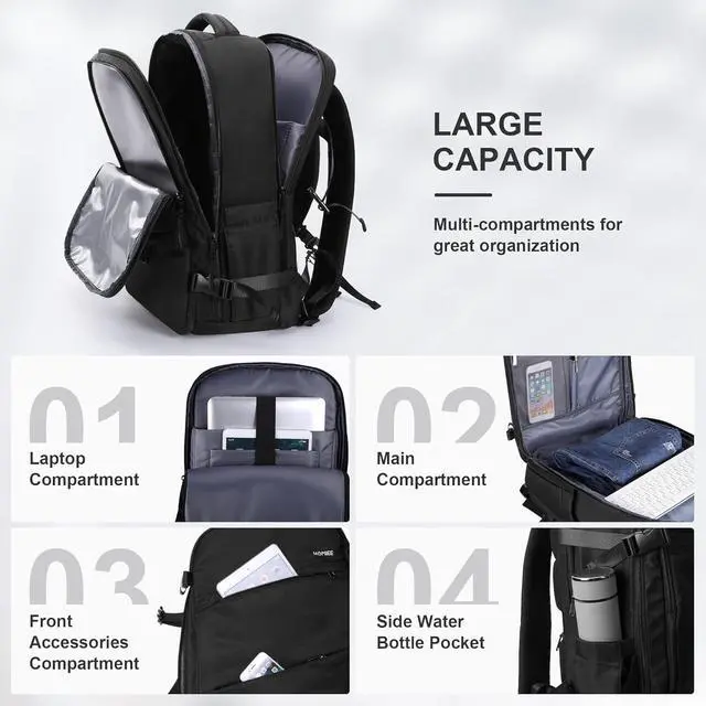 Multi-compartment Design: Equipped with a dedicated laptop compartment, dry and wet separation areas, and a main compartment, it can effectively store clothes, electronics, and shoes - perfect for travel, fitness, and daily commuting ^^ USB Port and Anti-theft Design - This travel backpack has a built-in USB charger on the outside and a charging cable inside, which is convenient for you to charge your phone while traveling. There is a zipper pocket on the back for storing valuables, which is anti-theft and convenient ^^ High-quality Materials - this backpack is made of durable waterproof polyester, which has good breathability and heat dissipation, and adopts wide S-shaped shoulder straps, which is very comfortable to carry and reduces the burden on shoulders and neck when carrying heavy luggage ^^ A Variety of Scenes - business office, short trip, long distance travel, gym exercise, daily travel, lightweight and multifunctional, you can easily switch scenes anytime, anywhere