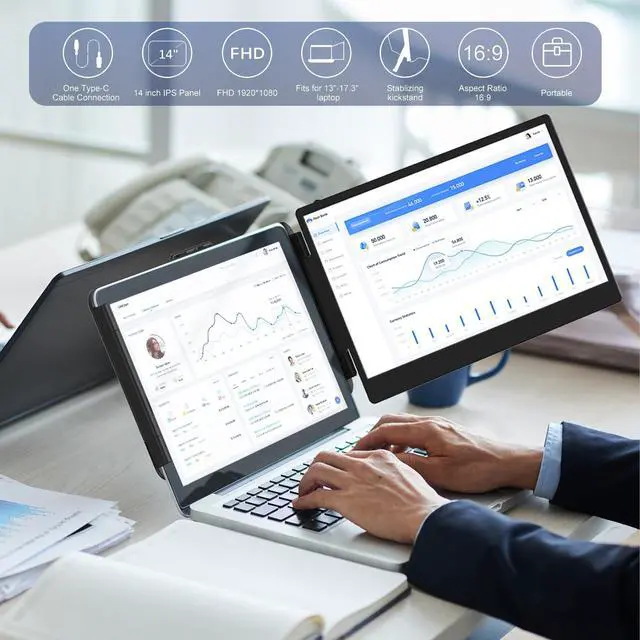 Increase Efficiency Up to 200 % & Save TimeKEFEYA travel monitor for laptop screen extender supports you to open multiple windows at the same time, work, video conference, watch movies, or play games on different screens by not having to switch back and forth on a single laptop screen continuously, increase your efficient by up to 200 %. Perfect for people who work on the goremote workers, watch a movieIT professionals, Players, Stock traders, Programmers, game players, etc! ^^ 1080P FHD IPS Panel for Great