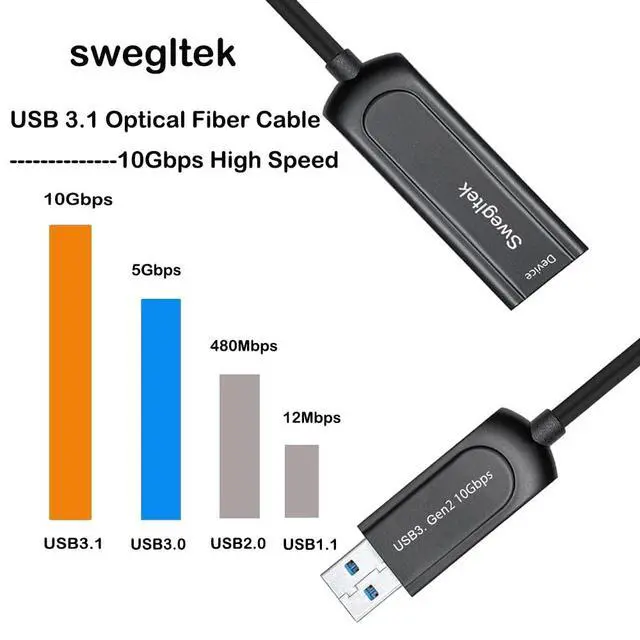 Swegltk USB Extension Fiber Active 3.1 Cable Under the help of optical fiber design, cable OD only 4.8 mm, easy for installation, support plug&play, no need external power supply. And has lower EMI interrupt, and without signal loss at high speed signal transmission. Different USB devices with comprehensive compatibility testing before shipment, has perfect compatible with most USB device. ^^ Swegltk USB Extension 3.1 Cable 10Gbps Support USB 3.1 Gen 2, support 10Gbps, Support max 50m with zero data loss. Fiber Optic cables don't support power charge or touch function on the screen.