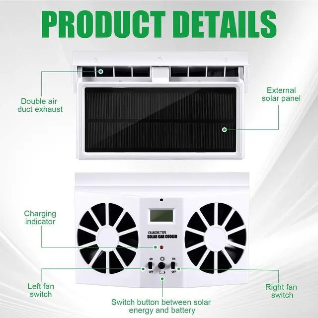 ventilation: With the car solar fan, you will enjoy more efficient ventilation. The fan initiates a convection process, drawing hot air out and inviting fresh air in. This enhances the air quality and reduces the possibility of high temperature breakdown to interior components.