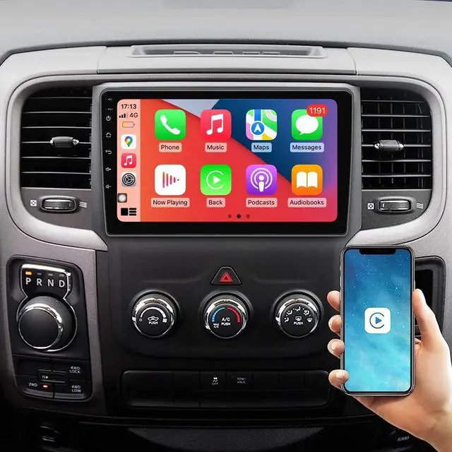 1. New Applicable Models &YearsThis radio Plug and Play compatible with For Dodge RAM 1500 2500 3500 2013/2014/2015/2016/2017/2018. Manual Air Conditioner. ^^ 2. Super hardware and softwareAndroid 12 car radio. 2GB RAM + 32GB ROM Build-in wireless Carplay Wired Android Auto, High Performance, Low Power Consumption, More faster and Stable, 9 inch IPS capacitive touch screen, 1280*720 high resolution, support 4K video, will provide you the excellent experience in the car. ^^ 3. Built-in Carplay & Android AutoWireless carplay, no need to connect USB cable.