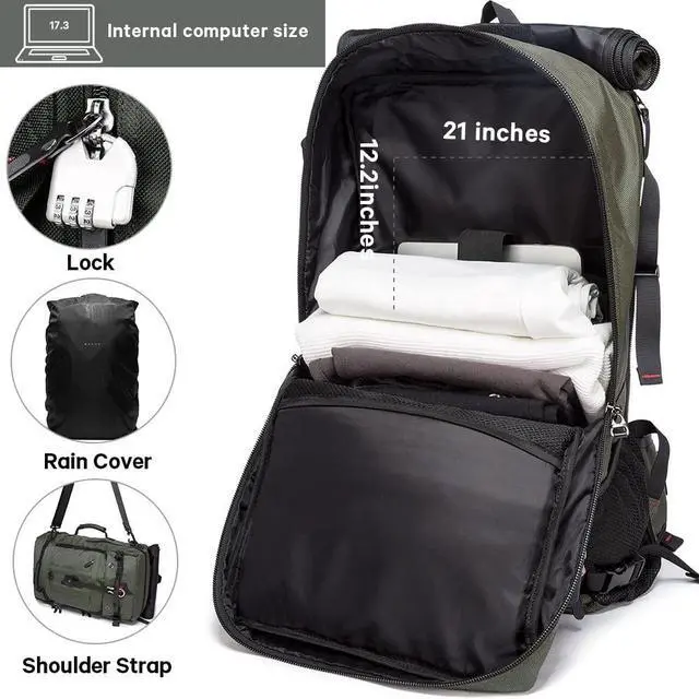 )weight: 3.68 LBS ^^ Multifunctional DaypacksHybrid (Backpack/Duffle Bag/Shoulder Bag/Travel Bag) conversion. Can be used several different ways. It can be served as everyday backpack, spacious college bookbags, professional backpack for laptop or daily use at anywhere for weekend getaway, occasional international travel, overnight backpack camping, hiking with the large capacity backpack, Our product provides a all in one system design that allows you to pack for traveling, business meet. ^^
