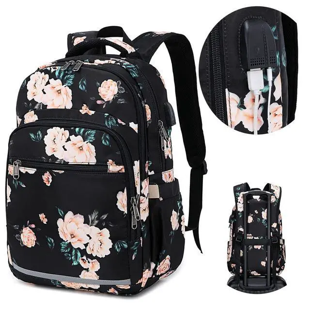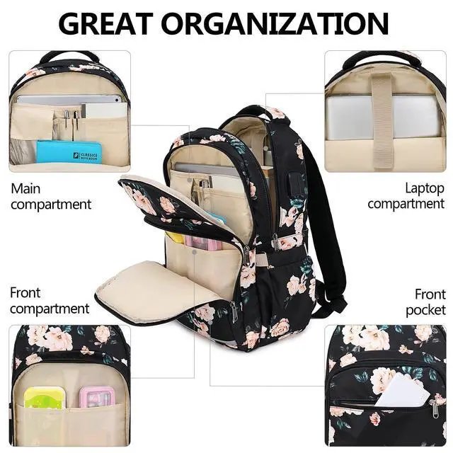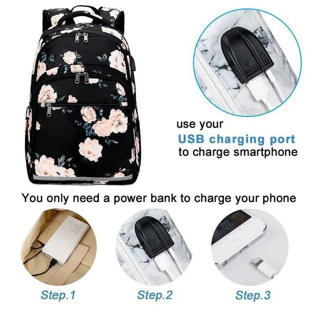 ^^ Multi-compartment Laptop backpack: The main compartment with two separated protective layer compartments which can provide roomy space for your laptop( 15.6 inch) and tablet at same time. ^^ Multi-function SchoolbagWith an USB charging port on the side of the backpack and built-in charging cable inside, provides convenience to charge your phone anywhere without messing your backpack (POWER BANK is not included). A luggage Strap allows backpack fit on luggage/suitcase ^^