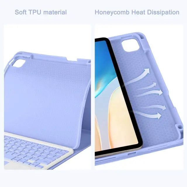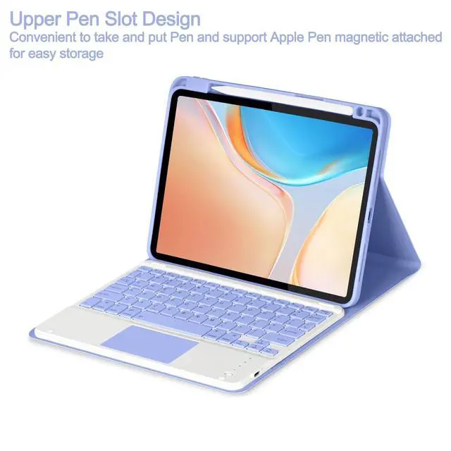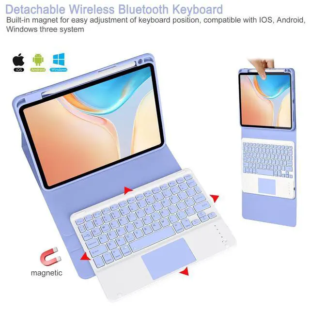 Note: Please Upgrade your tablet software to iPad OS 13.4 to fully access to the touchpad function. ^^ Magnetically Detachable KeyboardThis iPad 10th/A16 11th gen case with keyboard is magnetic so it can be easily repositioned or removed from the case. The case has 3 grooves to adjust the viewing angle as you like, make your ipad stand steadily. You can adjust to the optimal angle for studying, working, or entertaining. ^^ Convenient Pencil HolderThe iPad 10th/A16 11th generation keyboard case designed with pencil holder and pen slot on top to place and take the pen easier, and support Apple Pen magnetic attached for easy storage.