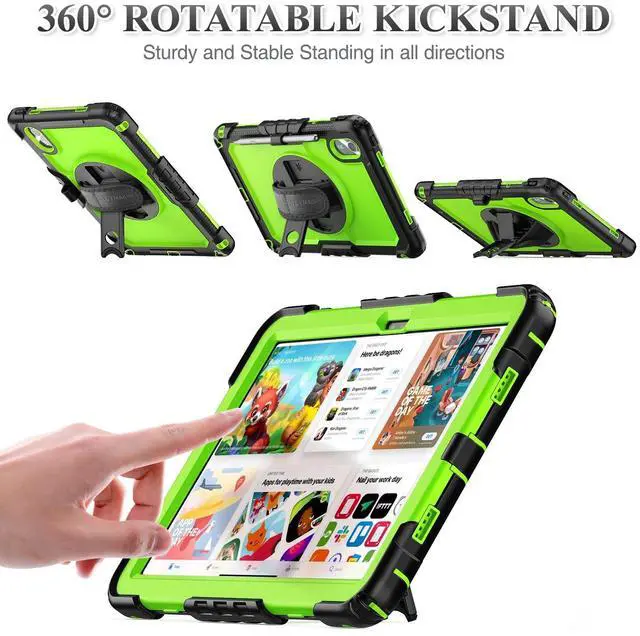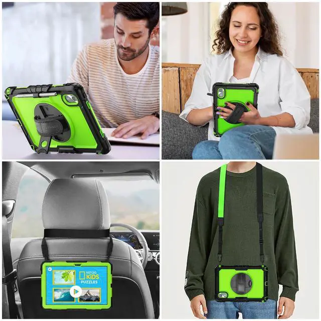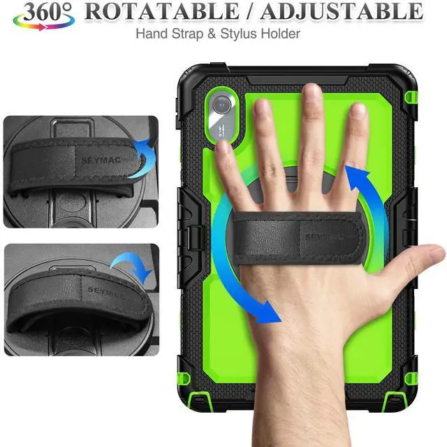 • 360 degree Rotating Stand + Hand Strap & Portable Shoulder Strap: 360 Degree rotating Kickstand provides multi-angle viewing, with soft handle strap, provide protection and convenience when use and study. With Shoulder Strap to hang to make hands be free-of