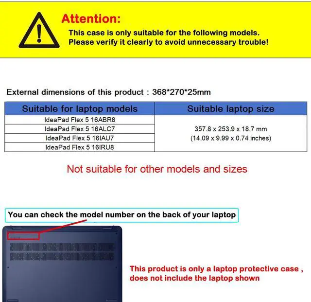 Most of the returns and exchanges are due to not checking the model and size properly. Please check carefully. Thank you! This product is only suitable for the following models: IdeaPad Flex 5 16ABR8 IdeaPad Flex 5 16ALC7 IdeaPad Flex 5 16IAU7 IdeaPad Flex 5 16IRU8