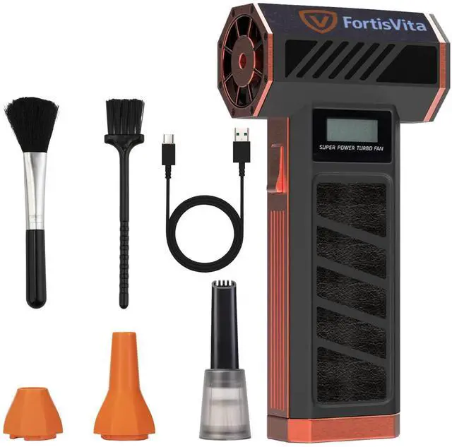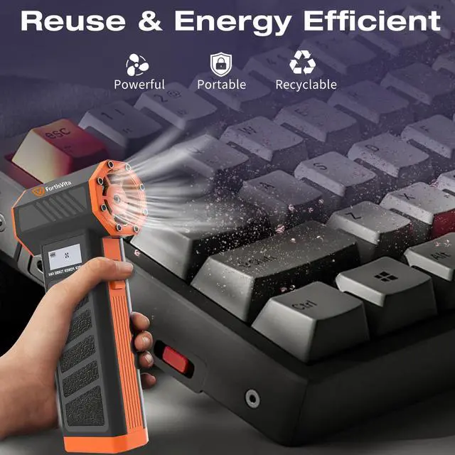 Versatile Cleaning & Inflating Tool Perfect for cleaning delicate electronics, keyboards, and car interiors. Also suitable for inflating air mattresses or pools, making it a multi-functional device for various needs. ^^ Powerful & Adjustable Performance Features multiple speed settings (including a high-power mode) for tackling stubborn dust and debris. The motor is strong yet safe for sensitive components, with no static electricity produced during use. ^^ Long-Lasting Battery Life Offers up to 40 minutes of runtime on the lowest setting (7 minutes on turbo mode) with a quick recharge time of just 2- 2.5 hours, ensuring uninterrupted use.