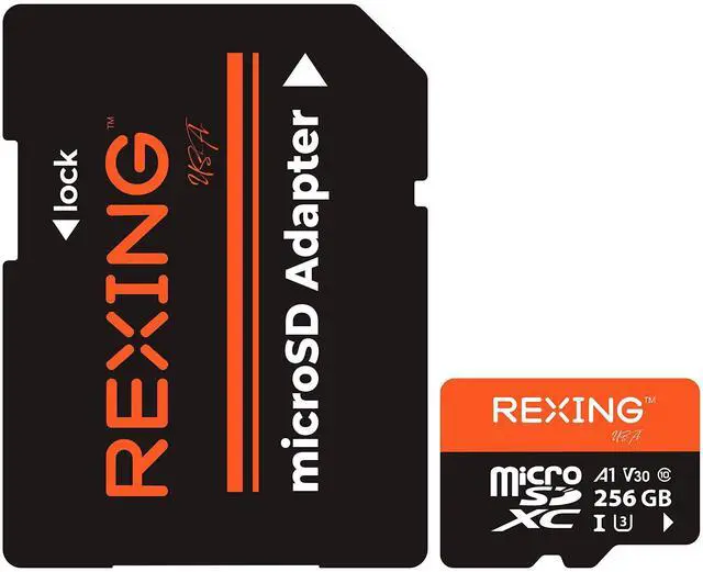 Video Performance Supports 4k and 1080p full HD video recording and playback with UHS Speed Class U3 and speed class 10. (Performance may vary depending on host device or file attributes. ^^ 256 Storage Capacity Provides plenty of space for your photos, videos, and more. A 256GB micro SD card can hold up to 30 hours of 4K video. Get all the extra space you need from a brand you can count on. ^^ Wide Compatibility Suitable for wide-ranging use. Compatible with all Rexing cameras and most devices that support microSDXC cards.