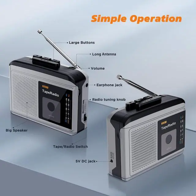 Package Contents: ezcap233 TapeRadio Cassette Player, USB cable for power, Manual-