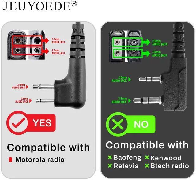 The U94 PTT cable is compatible with standard version Motorola plug XU2600, CP200D, CLS1110, CLS1410, VL50, RDM2070D, DLR1020, DLR1060, RDU4100, BPR400 etc. ^^ This PTT cable can't be used alone! It is suitable with military standard 7.1 mm plug headsets. ^^ Clip of this tactical headset adapter has a good bite force and can hold your clothes strap or MOLLE webbed tightly. ^^ Large PTT button that are easy to handle even if you're wearing thick gloves. ^^ The walkie-talkie adapter reinforced PVC cable is waterproof and moisture-proof, anti-tensile and anti-bending.