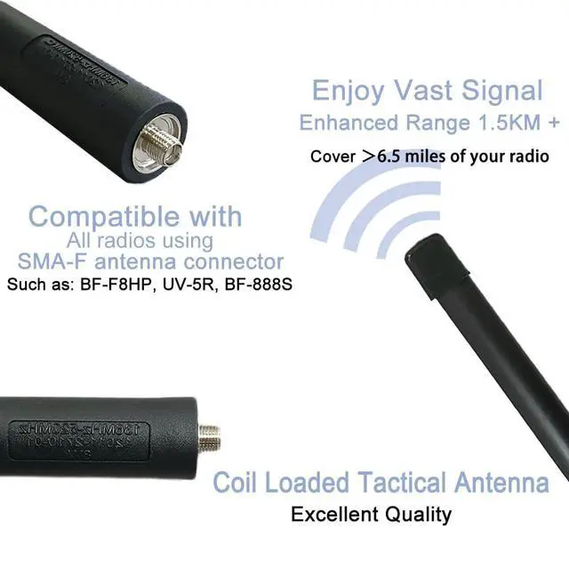 Compatible: all of two way radio with SMA-Male Jack (if you have any problem with it, please feel free to contact us)BAOFENG: UV-5R UV5RA UV-5RE BF-F8HP UV-5RX3 BF-F8 UV-82 UV-82T UV-82HP BF-888S BF-88A UV-5X3 UV-5RM BF-666S BF-777S BF-320 BF-1080 BF-490 BF-V6 BF-V8 BF-F9 BF-F8Plus BF-R3 BF-388A UV-5RB UV-5RC UV-5RD UV-5REPlus UV-5RG UV-5RQ UV-5RT UV-5S UV-5U UV-B5 UV-B6 UV-68 Pro UV68 Pro Max V2 UV-98 Pro UV98 Pro UV-S22 Pro DM-1702 UV-K5 Plus UV-5RH Pro UV-5RH UV-10RTK-208 TK-240 TK-250 TK-255 TK-260 TK-260G TK-270 TK-270G TK-272G TK-278 TK-278G TK-340 TK-349 TK-350 TK-353 TK-360 TK-360G TK-370 TK-370G TK-390 TK-380 TK-373G TK-372G TK-385TK-430 TK-431 TK-715 TK-2100 TK-2102 TK-2107 TK-2118 TK-2160 TK-2200 TK-2300 TK-2400 TK-2406M TK-2407M TK-3100 TK-3101 TK-3102 TK-3140 TK-3160 TK-3170 TK-3173 TK-3180 TK-3200 TK-3200L TK-3202 TK-3202LU TK-3207 TK-3300 TK-3400U TK-3402U16P ect. KG-659 KG-669 KG-679 KG-689 KG-699E KG-801 KG-816 KG-818 KG-819 KG-833 KG-889 KG-UVD1PLT-2288 LT-3288 LT-6288 LT-3188 LT-2188 LT-3260 LT-3268 LT6188 ect.