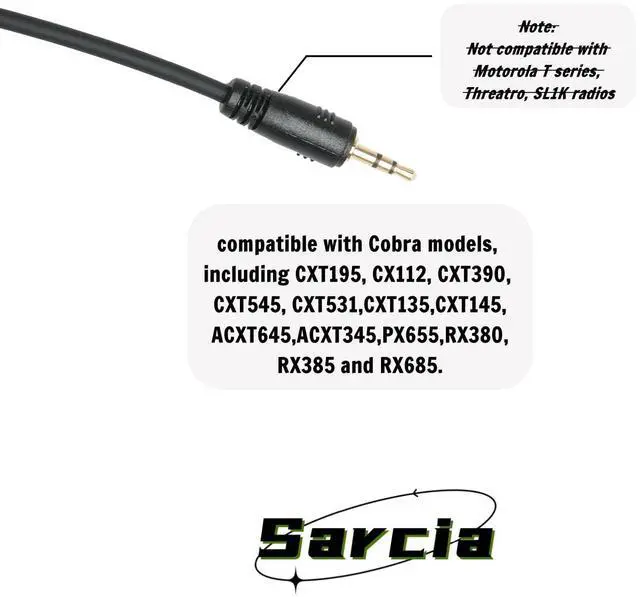 Walkie Talkie headset compatible with Cobra models, including CXT195, CX112, CXT390, CXT545, CXT531, CXT135, CXT145, ACXT645, ACXT345, PX655, RX380, RX385 and RX685.