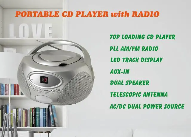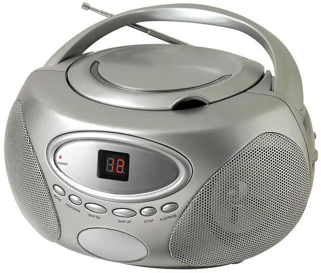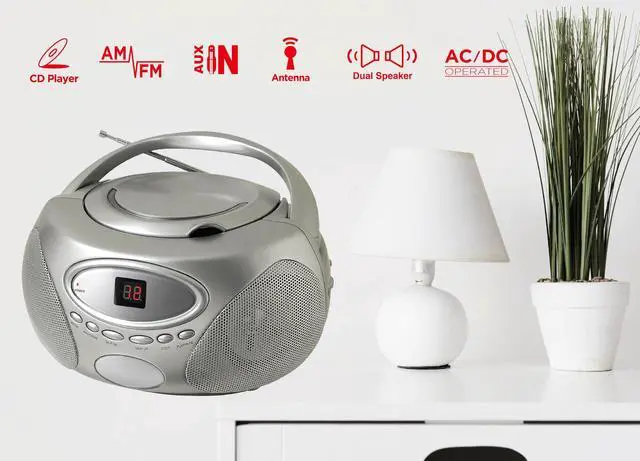 HANNLOMAX HX-333CD Portable CD Boombox, AM/FM Radio, LED Display, Aux-in Jack, AC/DC Dual Power Source. (Silver)
