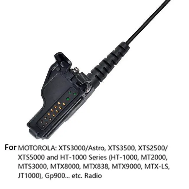 XTS Series: XTS1500, XTS 2500, XTS3000, XTS 3500, XTS5000, XTS 5000R; HT1000, HT 2000, JT1000, PR 1500, MT1500, MT 2000, MTS2000; ^^ Solid strongand durable cable. Straight PU Cable Reinforced by Kevlar Long-Life Design. Comfortable holding. One Wire Earpieces are popular for security applications particularly in noisy environments. One Cable to the earpiece. The other cable has the Mic combined with the PTT. ^^ Inline Ptt Switch - The inline switch sets you up for controlling push-to-talk features on your radio, and a lapel clip keeps it handy and out of the way. Talk and listen without holding the radio. Clear sound performance. ^^ High-quality Earpiece provide clear audio communication. Fashionable PTT design with metal clip. the Earpiece may be secured to the users lapel or clothing; Comfortable holding. High quality sound even in loud environments.
