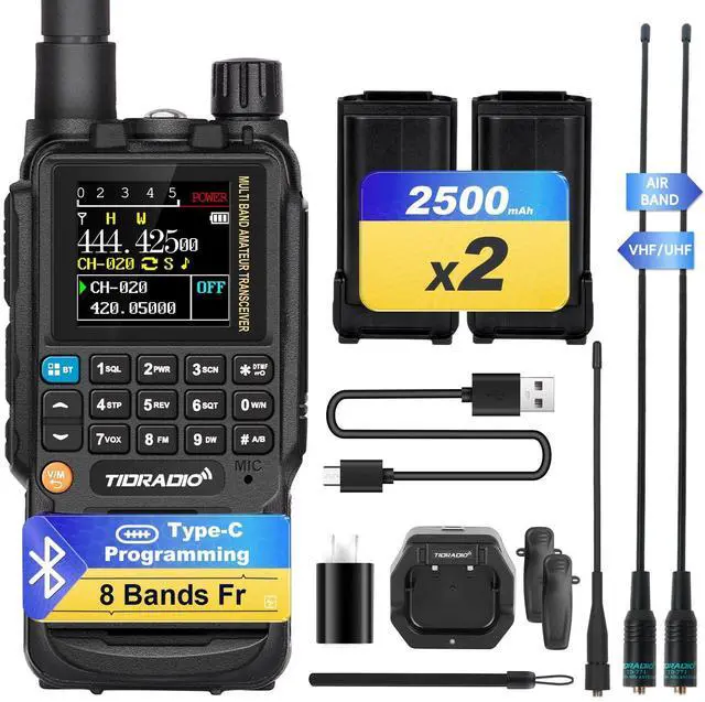New UpgradeTD-H3 brings you (Included ), & (Supports CHIRP programming), and,,. " LCD Color Screen, USB Charger and Enhanced 8 Flashlight, FM Radio, Transmit Time-Out, Busy Channel Lockout, Dual Band, Dual Watch, Adjustable Squelch, Scan, VOX, NOAA, and More! It serves as survival gear and emergency supplies, and functions as a NOAA Weather Receiver. But we want you to be safe all the time. ^^ Kit Includes1 x TD-H3 radio with antenna, 2 x 2500mAh Li-ion battery, 1 x TD-771 antenna, 1 x Air band antenna, 1 x Desktop charger, 1 x Charger, 1 x Type-C data cable, 1 x Belt clip, 1 x Hand strap, 1 x English manual.