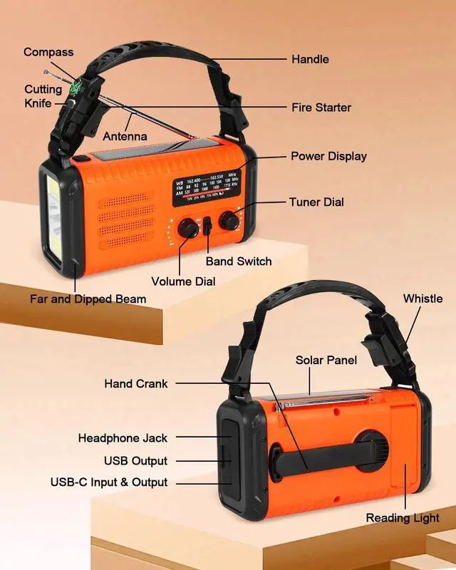 In emergencies, these tools may play unexpected roles. This is great emergency supplies, perfect for your emergency kit. ^^ BORN FOR EMERGENCIES - This portable am fm radio with IPX3 water-resistant, 1.8LB