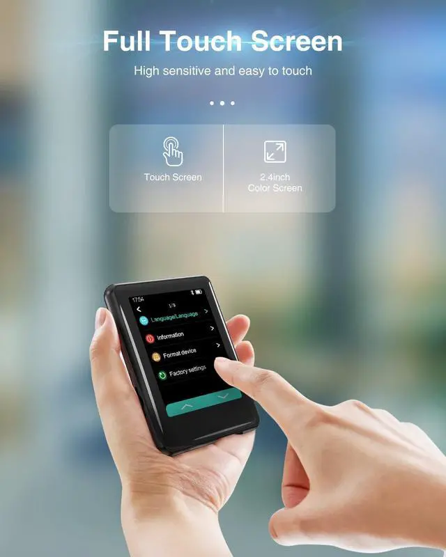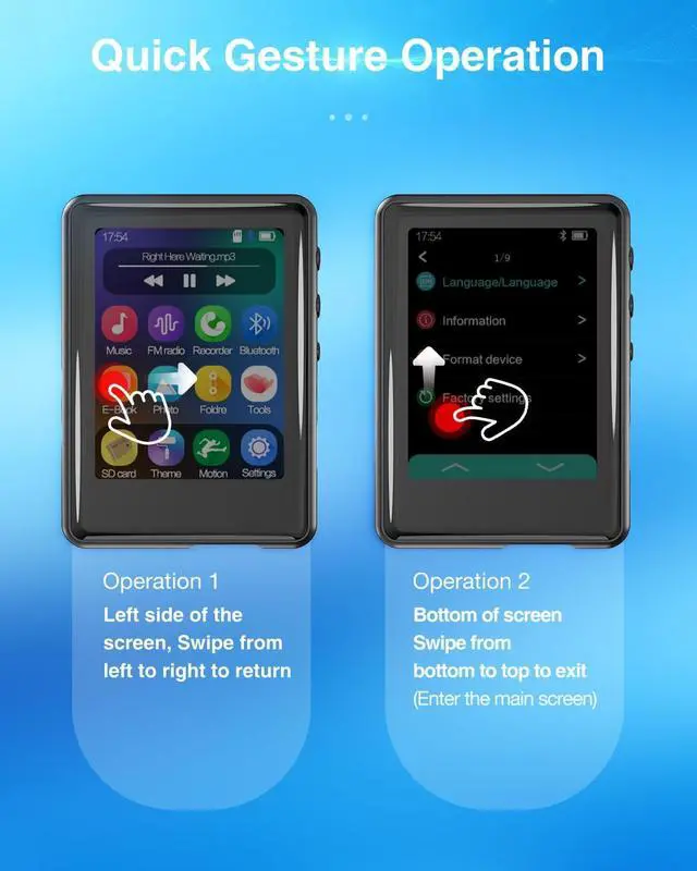 Newly upgraded interfaceThis portable mp3 player biult-in speaker, comes with a headset for listening to music with your child and is a great tool for children to listen to music and learn to sing. (Four colorful themes are more popular among children) ^^ Full-touch screen Upgraded Gesture OperationThis music player adopts the latest user interface, upgrades gesture operation function, and operates similar to smart devices. Its design is more innovative and visually appealing. ^^ Newly upgraded interfaceThis portable mp3 player biult-in speaker, comes with a headset for listening to music with your child and is a great tool for children to listen to music and learn to sing.