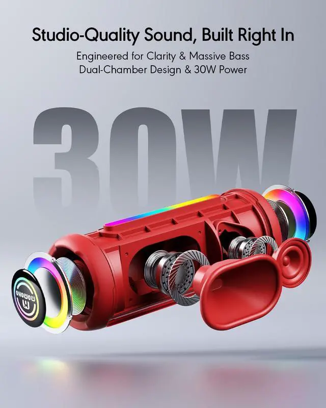 Portable Bluetooth Speaker, IPX7 Waterproof Wireless Speaker, 30W Loud Stereo Sound with Deep Bass, Bluetooth 5.4, EQ Mode for Home/Outdoor/Travel, Birthday Gifts for Adults Men Women Teen (Red)