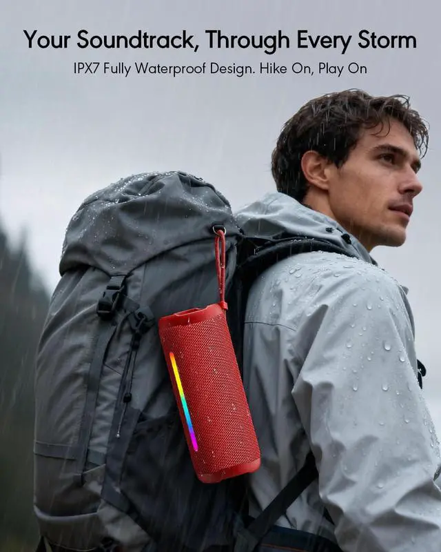 • IPX7 Waterproof & 20-Hour Playtime: Built for adventure. The IPX7 waterproof rating protects against full water immersion, making it perfect for the pool, beach, or shower. The large 5000mAh battery provides up to 20 hours of playtime (Playtime varies with volume, EQ mode, and light usage), powering through all-day outings.