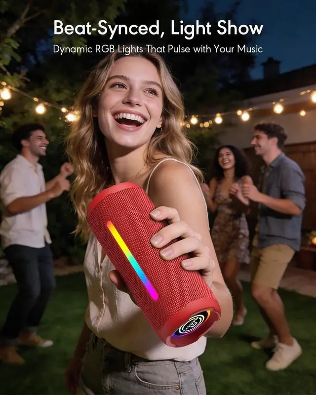 Wireless Stereo Pairing: Elevate any party or gathering with dynamic RGB lights that pulse to the beat. For immersive outdoor or indoor sound, use TWS pairing to wirelessly connect two speakers, creating a powerful stereo soundstage. ^^ Advanced Bluetooth 5.4