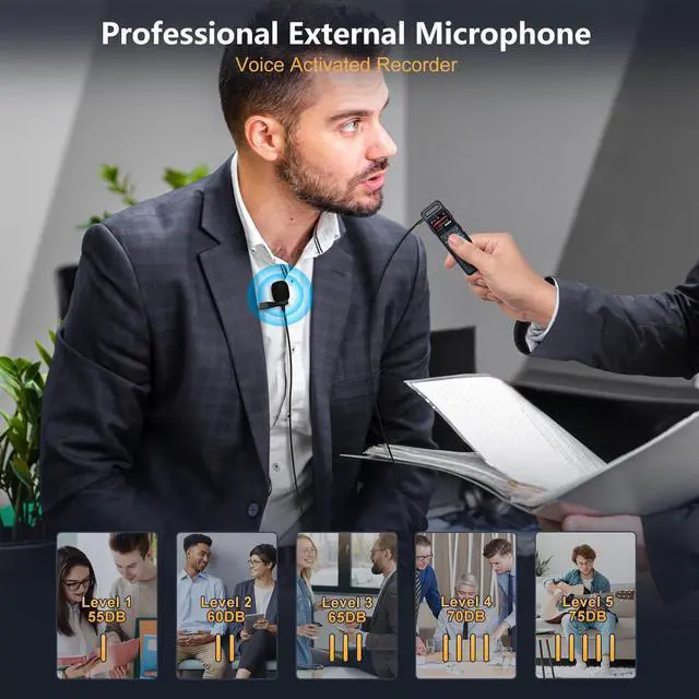 The unique dynamic screen design and exquisite metal shell make it an ideal gift for family and friends ^^ One-Touch Recording & Secure Lock FunctionDesigned for ease of use, our tape recorder allows instant recording with a simple slide of the REC button, even when powered off. The exclusive Lock function prevents accidental touches, ensuring uninterrupted recording sessions. If reliability and user-friendliness are your priorities, this voice activated recorder is the perfect tool for your needs ^^ Professional External Microphone & Upgraded Noise ReductionThe external wired microphone can achieve directional sound pickup, accurately capture the target voice (such as interviewees, speakers).