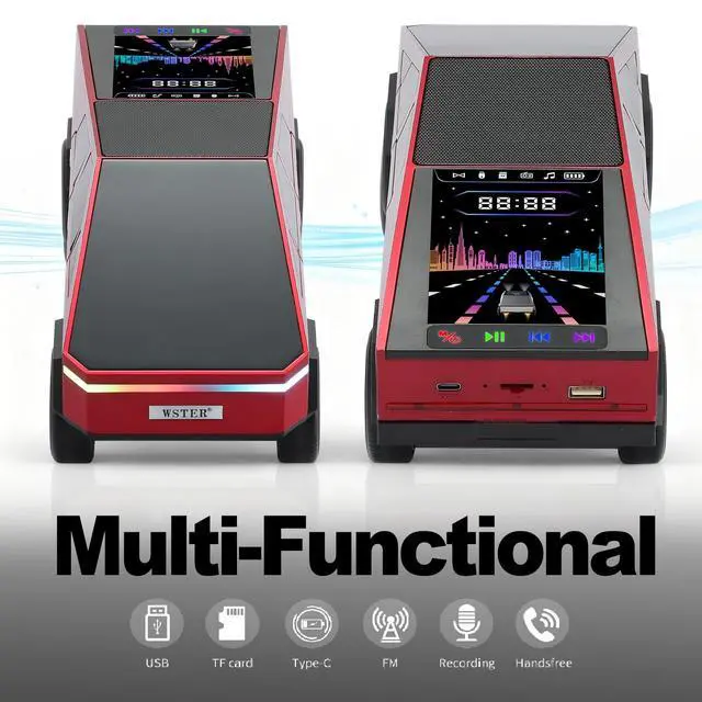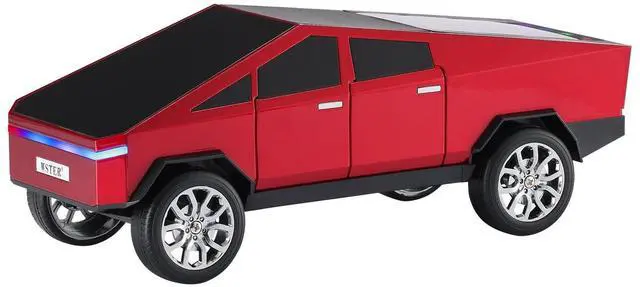 WSTER Cyber Pickup Bluetooth Replica Speaker with LED Display Screen Considerate Gift for Car Design Fans & Audio Users, TWS Stereo, FM, USB/TF Playback, LED Headlights, Built-in Mic (RED)