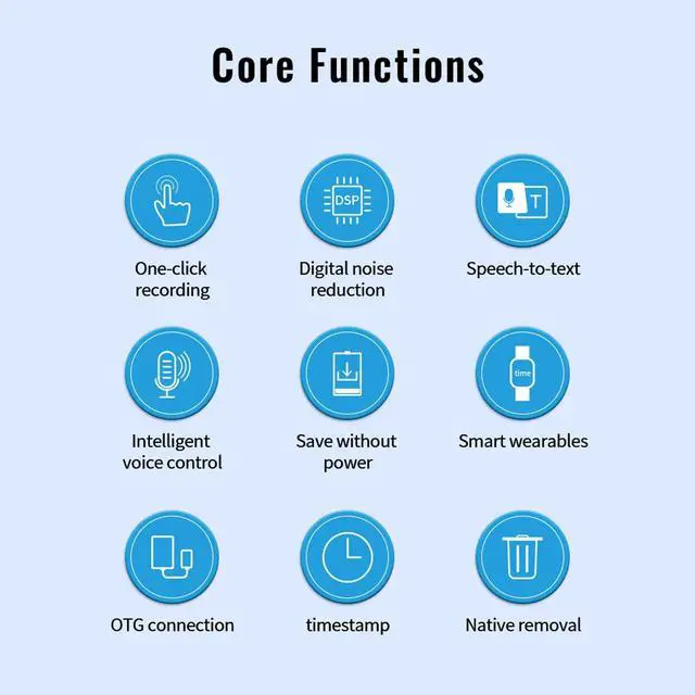 • One Click Recording: Simple operation, just one click to start recording. Suitable for business meeting records, student study recording notes, reception interview recordings, etc.