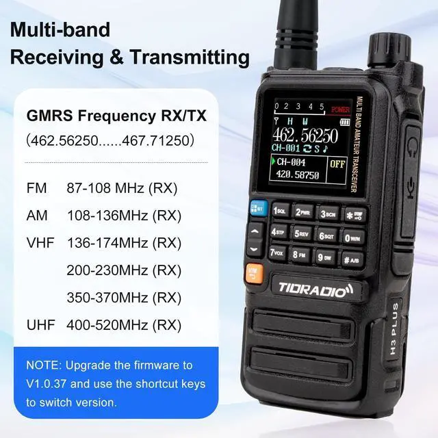 About Unlocking: 1. TD-H3 Plus GMRS radio upgrade the firmware to V 1.0. 37 and use the shortcut key to switch between versions (gmrs/ham/normal).