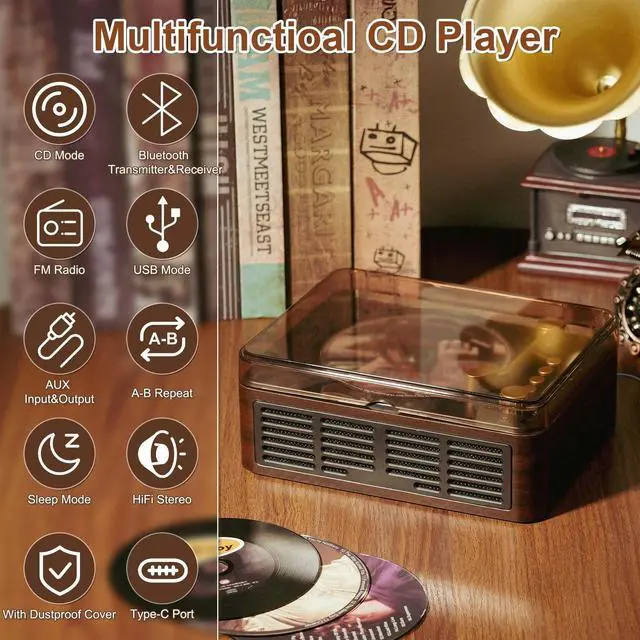 While the LED indicator light changes color to reflect different operations and modes for easily understanding. Designed for simplicity, this vintage CD player ensures a smooth experienceno technical skills required.