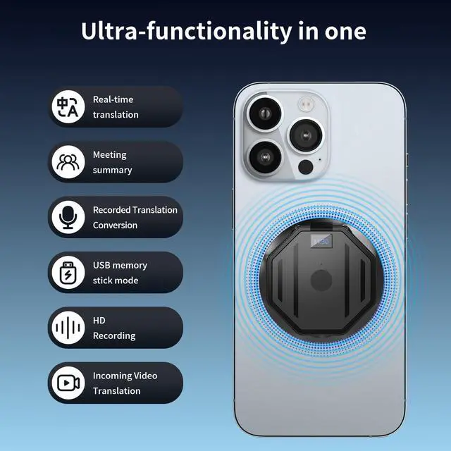 High-definition noise-canceling microphone filters ambient noises, so you can pick up the sound clearly even in night markets and construction sites, and the translation results are more accurate. ^^ Ultra-long Battery life + Flash Disk Mode, Worry-free Travel 10 hours of continuous translation (fully charged state), intermittent use up to 4 weeks, disconnected automatic hibernation. Bluetooth disabled on the airplane? No problem, the device body has 64G memory, can record independently, and then organize the conversation after landing. U disk mode, the device can be used as a U disk to connect to the computer, and store important documents on the go. ^^ Perfect Choice and Gift Still worrying about gifts for your family's promotion and going abroad? No matter, Elourn AI Translation Recorder is a perfect, stylish and practical gift and can also be used as a cell phone holder for their good experience.