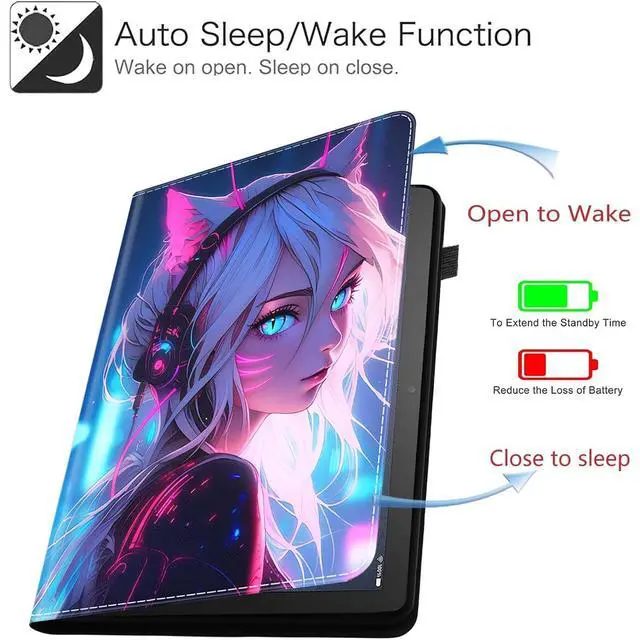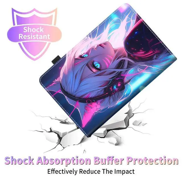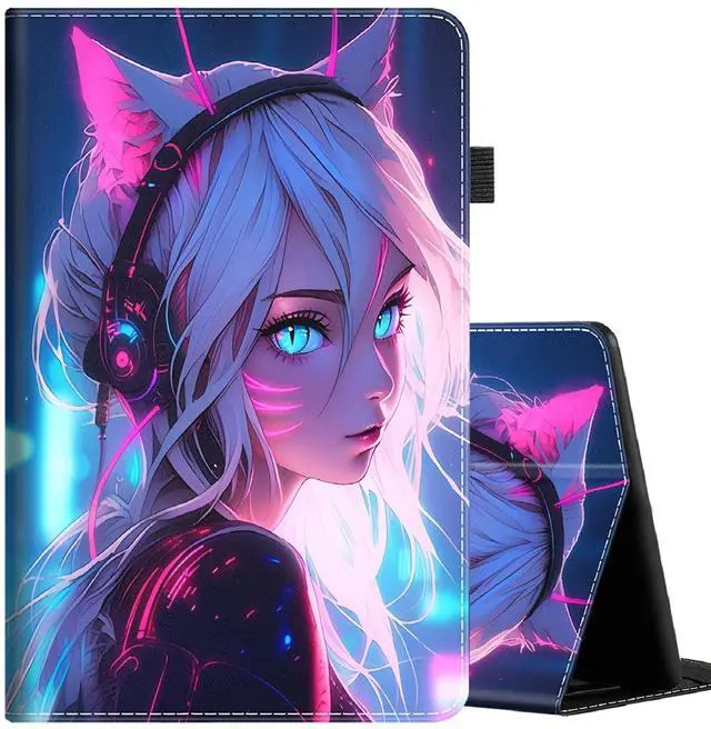 Case for All-New Kindle Fire HD 8 & 8 Plus Tablet (12th Generation/10th Generation, 2022/2020 Release) 8, Durable Shockproof Protective Cover, Cat Girl Blue Neon Anime