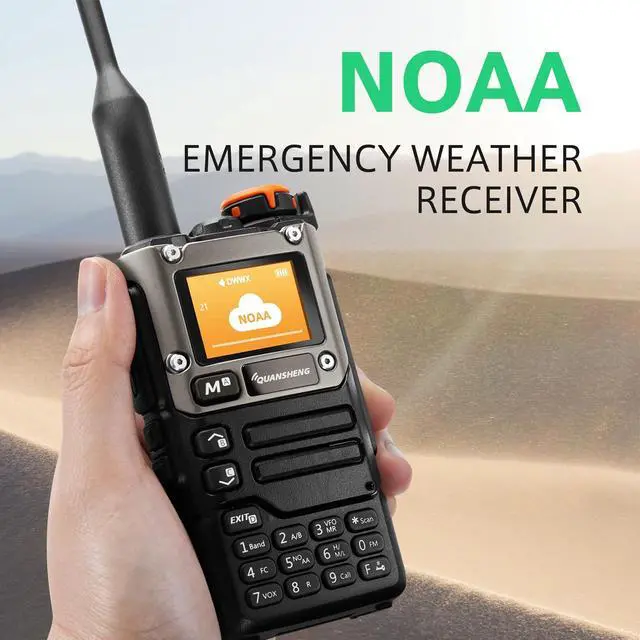 The QUANSHENG K6 is your essential dual-band (VHF/UHF) handheld transceiver for amateur radio enthusiasts. Explore versatile communication on 144-148MHz & 430-450MHz frequencies. Program up to 128 channels for quick access. Experience clear audio and reliable range. ^^ Dual band VHF UHF amateur handheld radio, ham transceiver HT, emergency FM radio, flashlight utility, long battery life 1600mAh, compact portable, field operations, hiking camping comms, clear audio reception, repeater capable, frequency scanning, CTCSS DCS codes, USB-C charging, NOAA weather alert, kit includes earpiece antenna charger, learn ham radio, entry-level transceiver, reliable communication device, ^^ The K6 is suitable for a diverse range of applications.