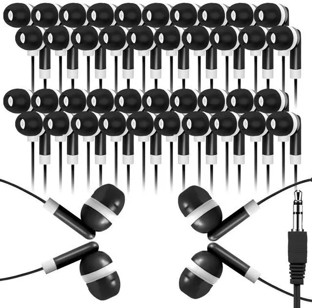 A set of 100 Wired Earbuds Headphones Bulk, each Kids in-ear headphones wrapped individually in bag, whose sufficient quantity are suitable for use as class set of headphones for students in the classroom ^^ Bring an Exceptional Audio Experience, at wholesale wired earbuds prices, light and comfortable school earbuds with high-quality sound on all smart devices ^^ Compatible with 3.5 mm Jack, Works for all Class room Desktop Computers, Laptops, Chromebooks Tablets, Smartphones, Audio devices etc ^^ Durable and Easy to Carry, designed for students of all ages, we've incorporated stronger wires, plastics and 3.5 mm connectors, all while keeping cost down and quality up ^^