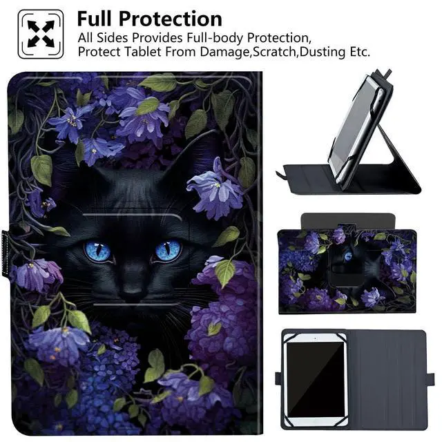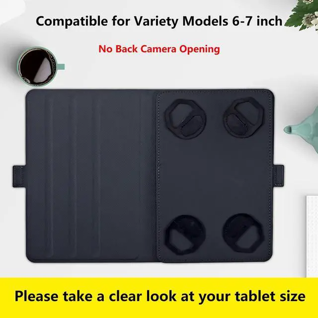 Perfect Compatibility- This universal tablet case was designed to 6-7 Inch E-reader Tablet. Such as for Amaozn Kinlde Fire 7, 6", 6.8", 7" kindle Series E-reader Tablet, for Samsung Galaxy Tab A 7.0. Please measure your device's dimension before purchasing (No back camera opening; NOT support auto sleep/wake for any tablets) ^^ 360 Degree Rotating Swivel Case - 360 degrees rotating swivel allows the tablet to rotate both vertically and horizontally with ease while in the case, multiple viewing angles stand function for easy reading and vedio-watching ^^ Premium Material- The universal tablet case made of premium durable PU leather.