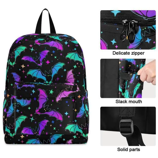 Roomy Space: -1 Main Zipped Pocket with laptop compartment pocket ( fit for 15.6 inch or less computers)-1 Front Zipped Pocket(for keys / tissue / snacks)-2 Sides Pockets(for water bottle / umbrella)