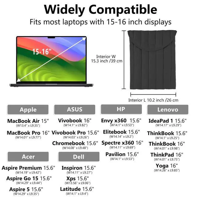 Wide Compatibility: In 15-16 inch capacity, we are compatible with all 15 inch and most 15.6 inch laptops. Compatible with MacBook Pro M2 M1 Max 2023, MacBook Air. It can be Apple Macbook case, Dell laptop cover, HP laptop cover, Contact laptop cover ^^