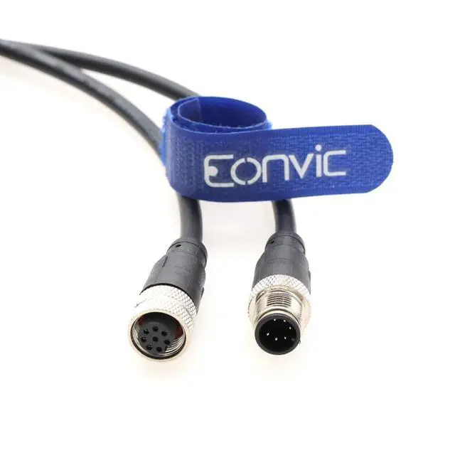 Eonvic M12 Cable 6 Pin A Code Male to Female Waterproof Aviation Sensor Cable Plug Shielded Injection Moulding Industrial Electrical PVC Cable 5m