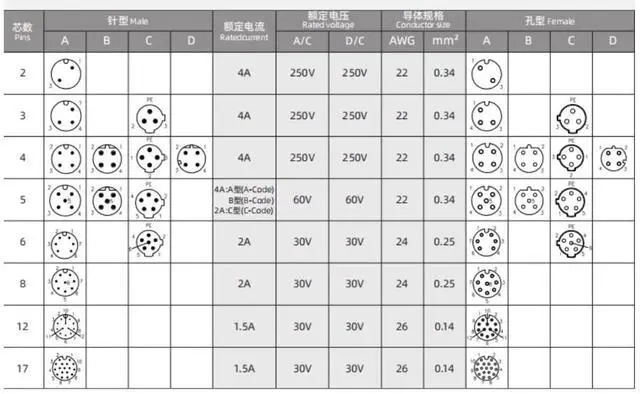 • This is M12 6pin A code male to female sensor cable. Screw Thread. Rated Current: 2A; Rated Voltage: 30V; Wire Size: 24AWG,0.25mm. We have industrial cable M12 A code 2pin, 3pin, 4pin, 5pin, 6pin, 8pin, 17pin, other types can be customised.