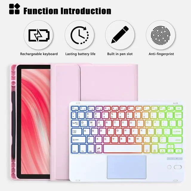 Applicable ModelOnly compatible with Fire HD 10/10 plus 10/10 inch 2021/2023 (11/13th generation) compatibility. Please check the model in the "setting" of the front tablet. This product cannot be used with other models. This product does not include tablets and stylus ^^ 7-color backlight+Touchpad keyboard The keyboard has seven colors of backlight to switch, making it easy to use in a dark environment, and can also adjust the backlight mode. The touchpad can replace the mouse to complete the operation, support multi -finger gesture function and improve office efficiency ^^ Type-C charging port+Charging keyboard The keyboard charging port is upgraded to Type-C, and the charging is faster.