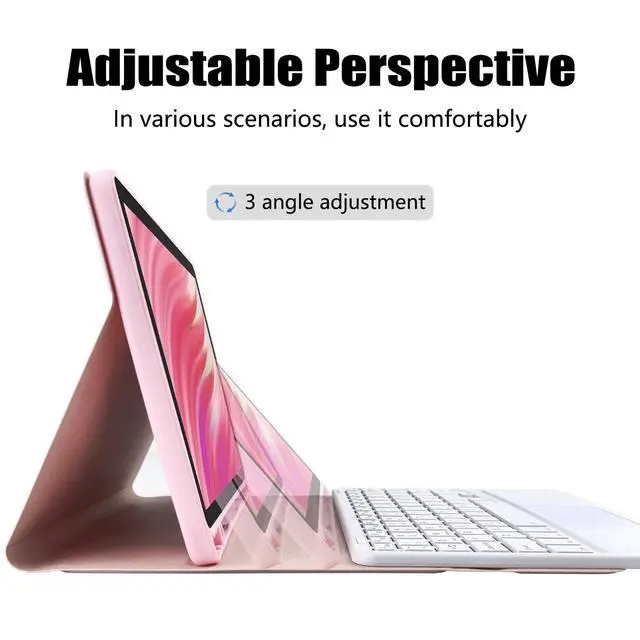 The built -in rechargeable battery in the keyboard does not need to be replaced, It can be charged by connecting the charging cable, which is more convenient ^^ Detachable keyboard+Anti-Slip GroovesThere are magnetic areas inside the keyboard case. The keyboard can be adsorbed on it, or the keyboard can be removed, which will not affect normal use. There is a anti-slip grooves inside the keyboard case, which can make the tablet more stable and reduce the situation of slipping ^^ Multi -angle adjustment+precision cutting The keyboard case supports multi -angle adjustment, allowing you to use it comfortably in different environments.