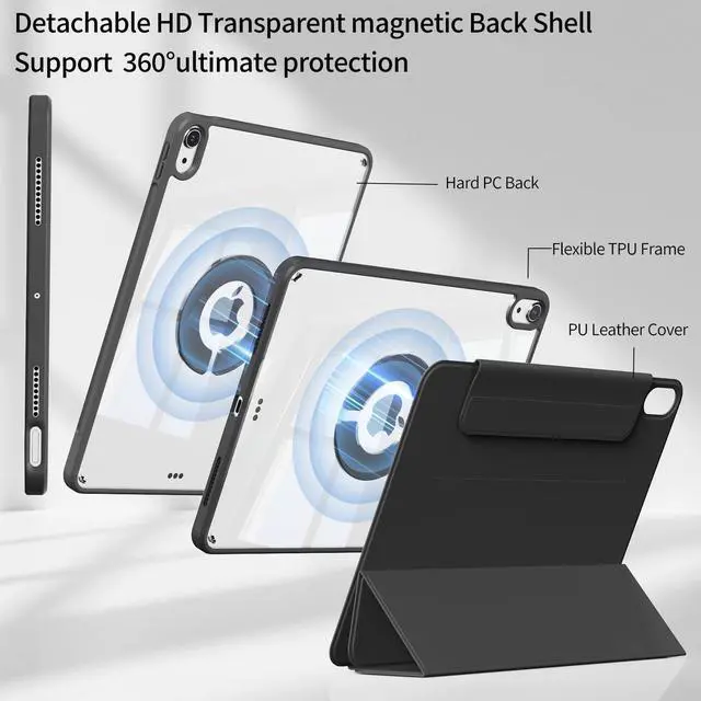 Coverage Protection: The protective case consists of a clear acrylic inner shell and a leather hard shell detachable outer shell with microfiber lining and shockproof TPU side frame, providing 360 all-round ultimate protection for your iPad ^^ 360